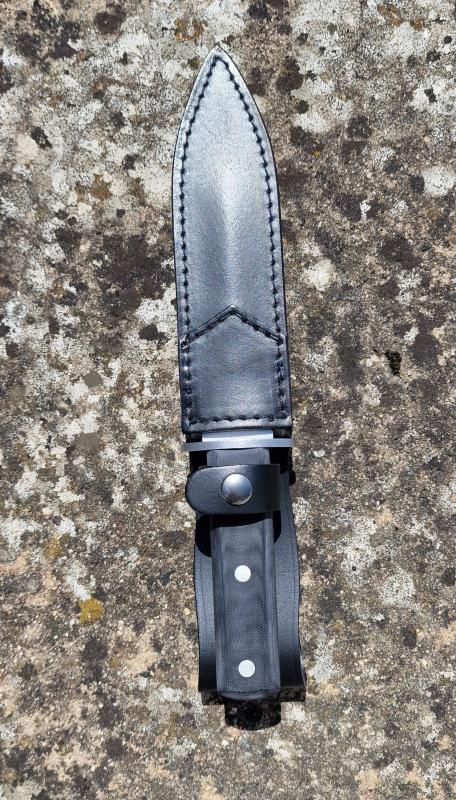 Das Messer ist aus rostfreiem 440-Stahl gefertigt, den wir aufgrund seiner Stärke und Widerstandsfähigkeit ausgewählt haben. Der Griff besteht aus G10, einem sehr starken und wartungsfreien Verbundmaterial mit gutem Griff. Lederscheide.